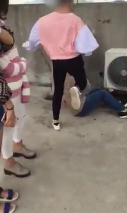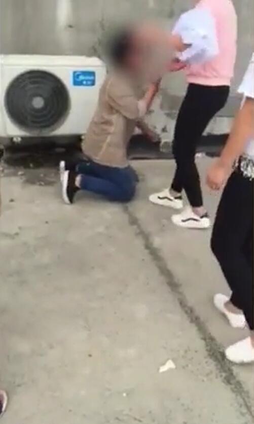 棕衣女孩拒绝后,粉衣女孩随即抓住其头发并击打头部,另一穿蓝裙女生随即上前一起殴打;头部遭击打7次以后,棕衣女生跪在地上,又被粉衣女生连续掌掴近20下,蓝裙女生和另一白衣女生随之加入殴打,边打边说“天天拿着钱装X买化妆品”。 (来自:澎湃新闻)