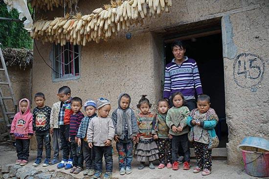 22岁的陈龙是四川省凉山州昭觉县哈甘乡瓦屋村幼儿班的教师,他所带的幼儿班租用的是村民一间带围墙的土坯房,屋里坑洼不平的黄土地面上,摆放着两排塑料课桌椅,班里有14个4到6岁的孩子,8个男孩,6个女孩。图为11月14日,陈龙和到校的12个学生在教室门前合影留念。