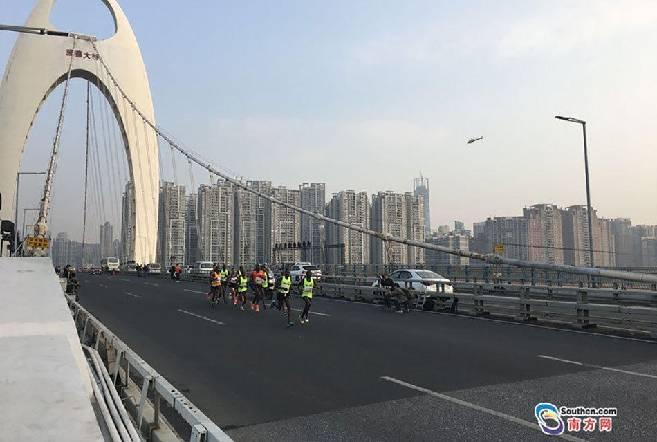 据透露,组委会将以广马5周年为契机,实现航拍广马赛事,全方位、多角度展示羊城之美。赛事届时将采用载人直升机进行航拍,目前组委会正在协调相关事宜。图为早上8:00左右,广马选手已登上猎德大桥,直升机全程护航。 (来自:腾讯大粤网)