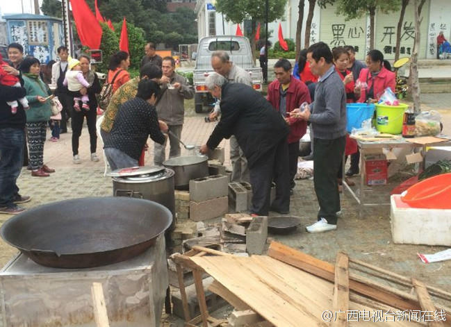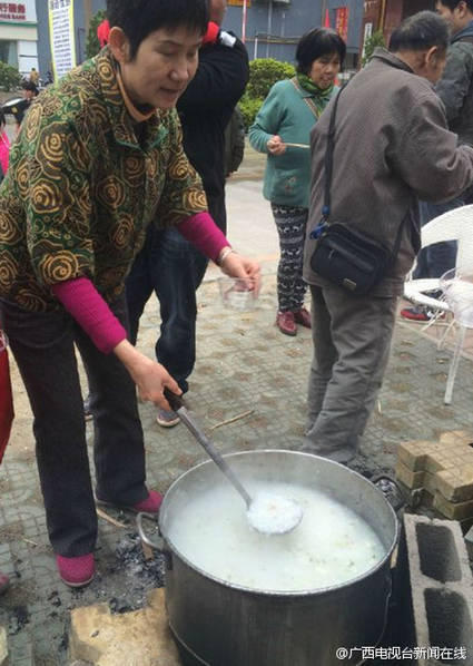 物业无奈劈柴煮饭。 (来自:广西电视台)