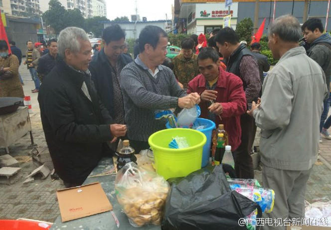 据广西电视台《新闻在线》官微报道,12月14日中午,南宁市新阳国际小区的业主们也在楼下搞了个野炊,不过他们可是一点都高兴不起来,因为野炊的原因是小区又停电停水了。 (来自:广西电视台)