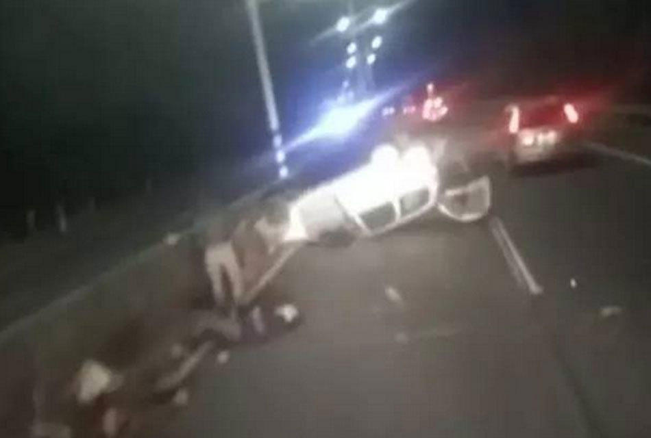 【本文由梅州广播电视台“民生820”微信公众号12月15日发布,复制“民生820”可在微信搜索关注。】14日晚上八点多,S223线梅县区丙村镇梅子坝大桥附近发生了一起交通事故,一辆小汽车不知为何忽然撞向路旁的隔离栏,导致小车内一人死亡两人受伤。事发后,观众余先生驾驶车辆刚好经过这个路段。从余先生行车记录仪拍下的画面可以看到:该路段一片凌乱,路面上散落着不少物品,一辆小汽车车顶着地的翻在路中央,双闪灯不停闪烁;借着车灯的亮光,依稀可以看到,路面上还躺着两个人,一动不动,车头旁边还有两名男子似乎在弄些什么,汽车后尾箱已经被撞的面目全非。 (来自:州广播电视台“民生820”)