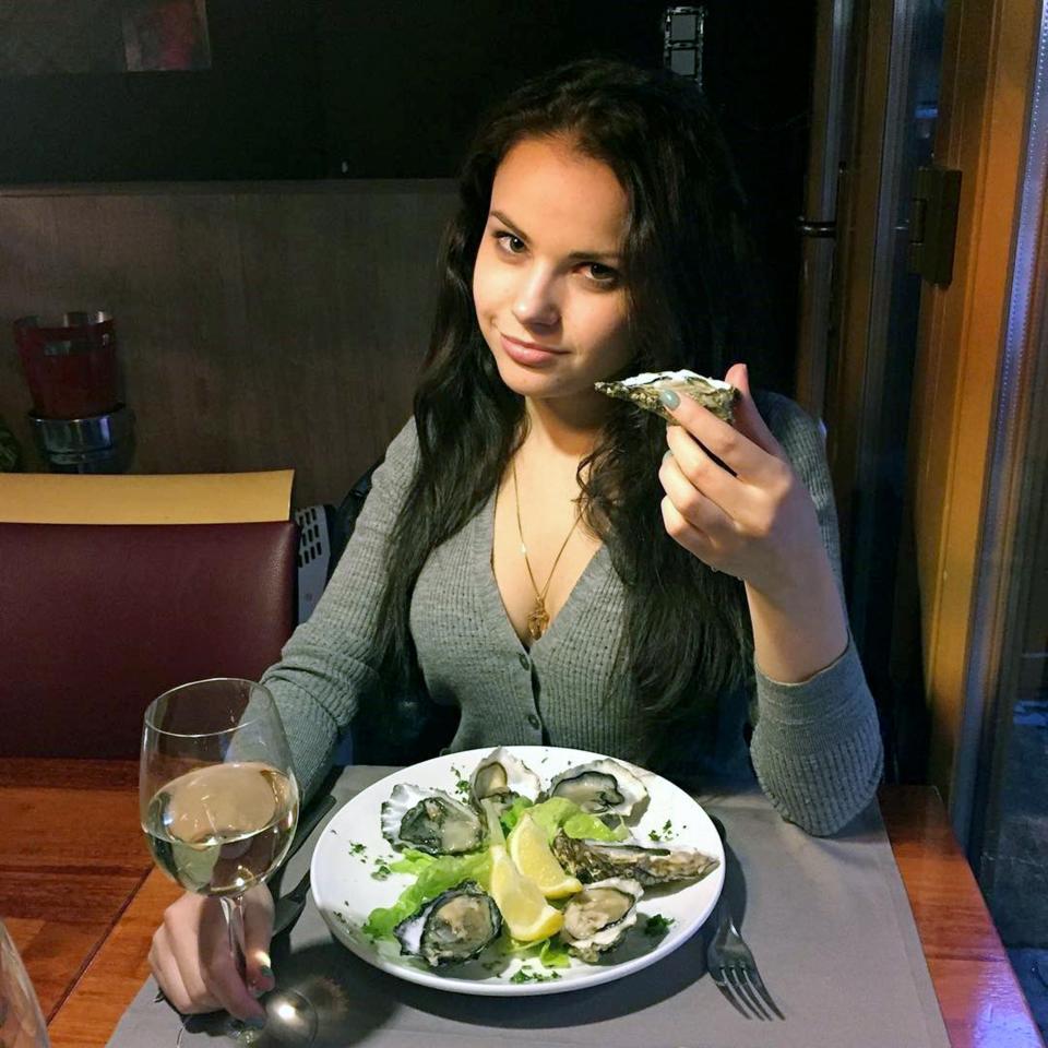 图为她在高档餐厅享受白葡萄酒和生蚝的晚餐。 (来自:腾讯国际新闻)