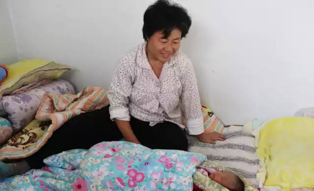 这是已经48岁高龄的产妇王爱英和丈夫生下的第二个儿子,2015年1月15日,他们正在筹备结婚的24岁独生子煤气中毒身亡。图为吴凤华夫妇刚刚出生19天的小儿子。