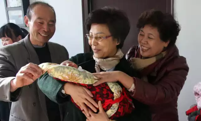 吴凤华把这个想法告诉了妻子,还未从悲痛中走出来的王爱英对再要一个孩子并不抱有太大希望,两个人都已经是年近半百的人了,再要一个孩子谈何容易。图为王爱英的公公婆婆抱着孙子。
