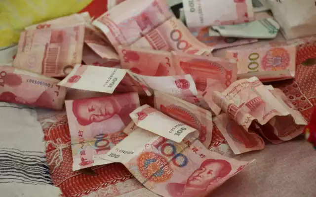 王爱英和吴凤华夫妇是山东阳信南潘家村的一对普通农民夫妻,日子说不上富裕,过得也算是平淡而幸福。图为道贺的亲朋给孩子的“长钱”。
