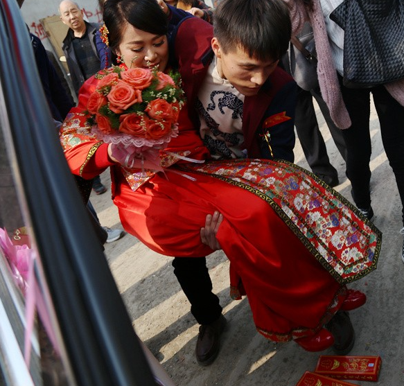 迎亲堵门。结婚堵门几乎是普遍存在婚俗形式,新郎要顺利将新娘接走,进门塞红包是必不可少的。