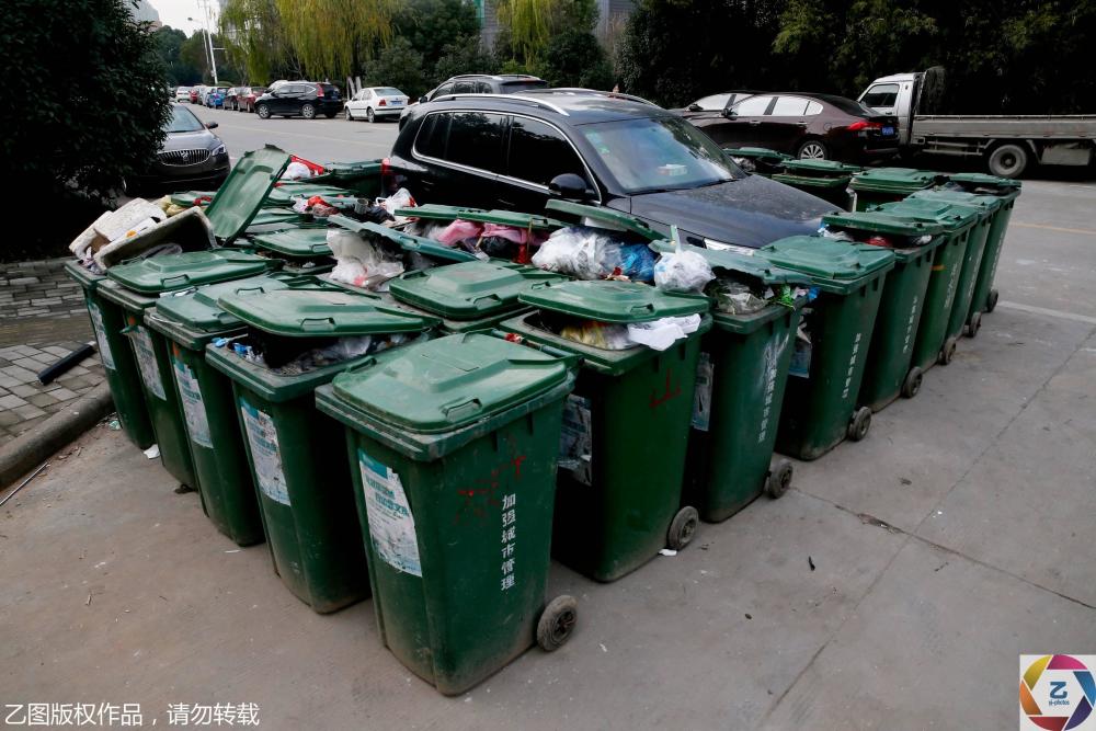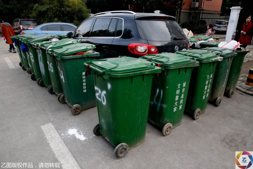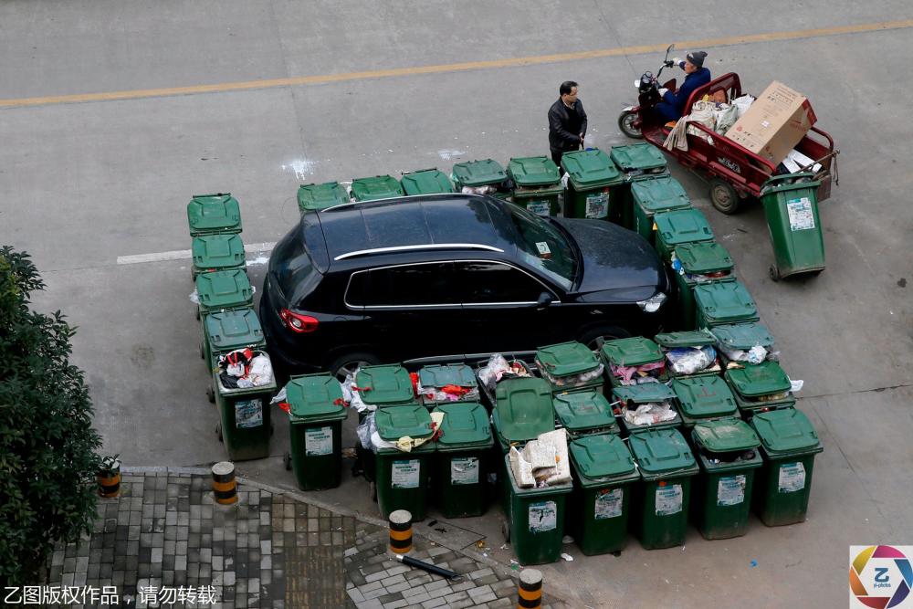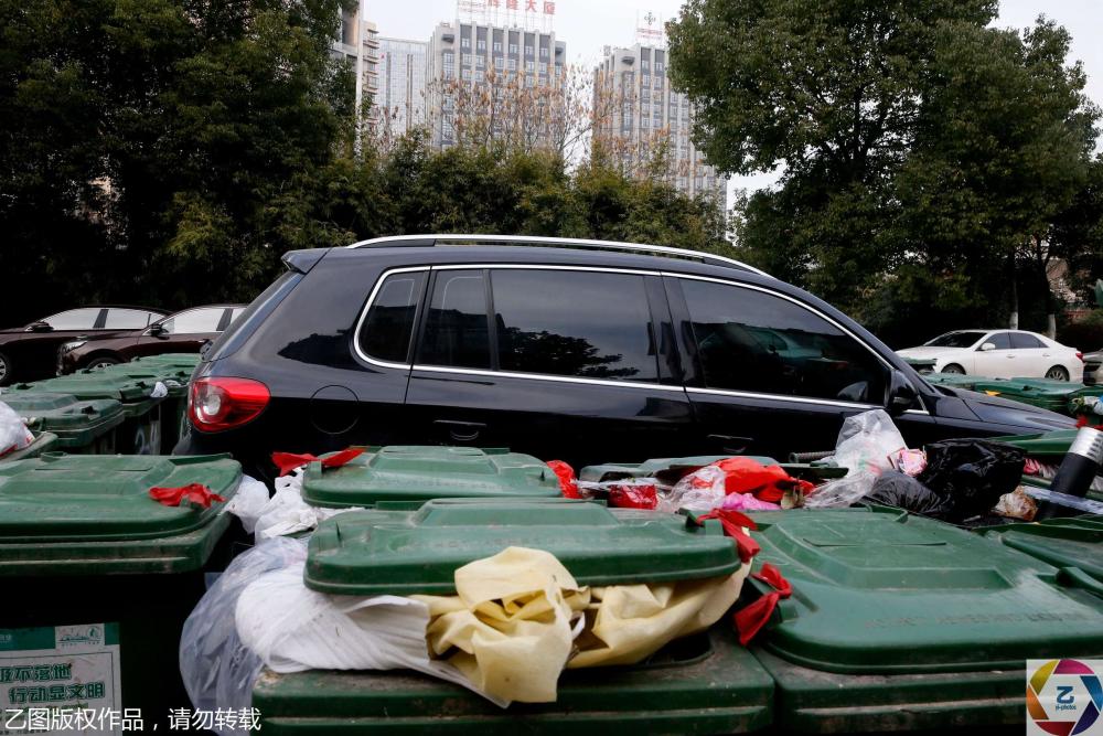 12月17日下午4点多,安徽合肥市龙图路翠庭园小区北门外,一辆停在路口皖A牌照的SUV私家车因占用垃圾中转点停车,被四十多个垃圾桶围得"水泄不通"。