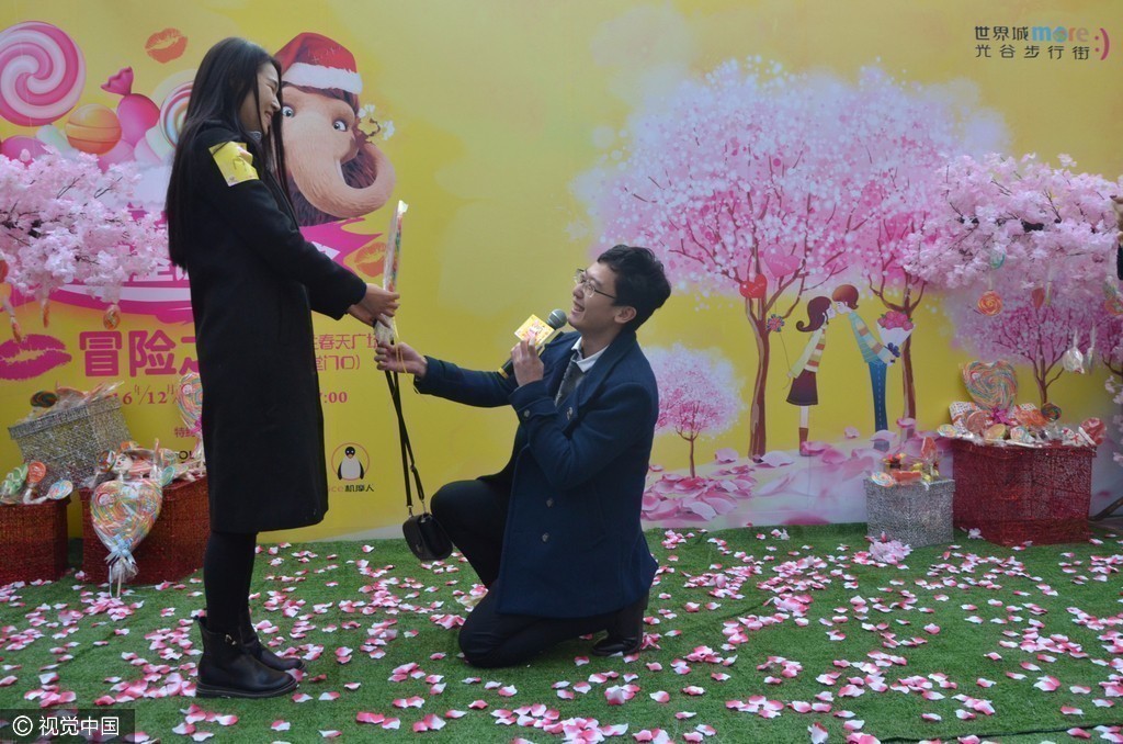 由世界城光谷步行街主办,糖果大师、果实摄影等共同举办的花式接吻挑战赛在光谷举行。