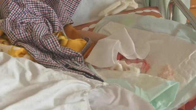 程程左手缠着厚厚的绷带,孩子一定受了不少苦。