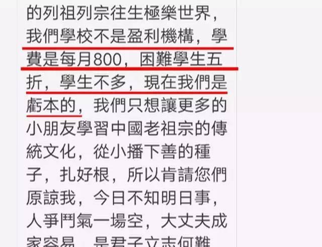 短信中同时还提到,他们这个机构不是盈利机构,学费为每个月800元,至今处于亏本经营。