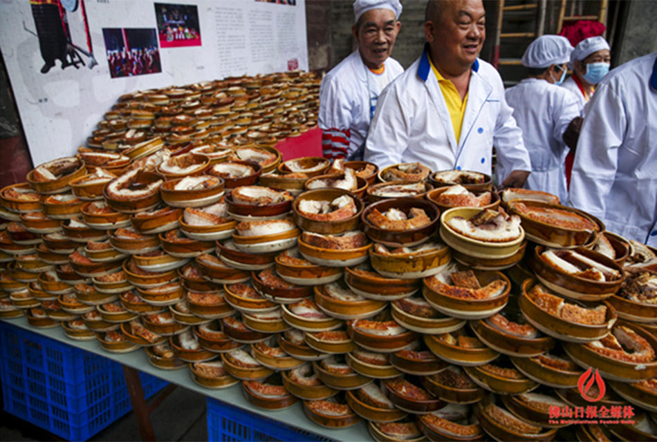 烧肉叠成山。 (来自:佛山日报)