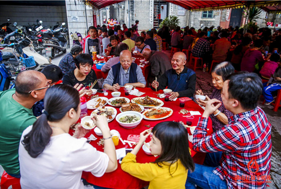 吃围餐饭。 (来自:佛山日报)