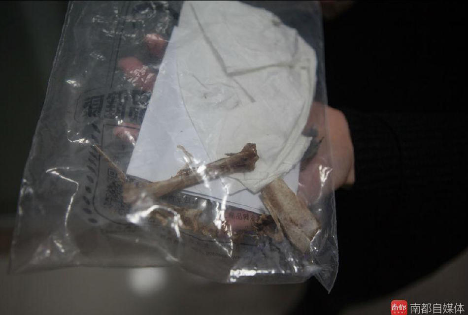 随后,陈女士等人陆续在三楼草丛里发现了一些被咬碎的骨头。他们怀疑这些骨头是投毒物。而且陈女士还回忆起,她的“牛腩”和另一只也遇难的“西瓜”都舔过这些东西。 (来自:深圳晚报)