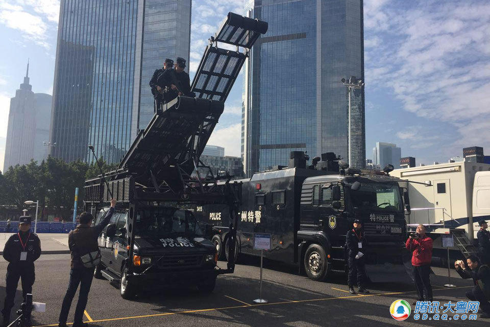 除了涉案物品展示,成果展的户外区还有新型装备展区和文艺表演。图为攀登车,主要功能为高空突破、人质救援、越障登船、灾害快速反应和反劫机等。