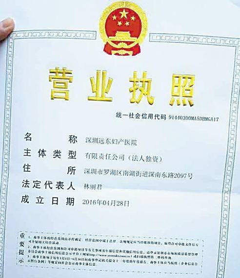 2016年12月30日,深圳市市场监管委向深圳市远东妇产医院颁发了国内第一张“同名”营业执照。