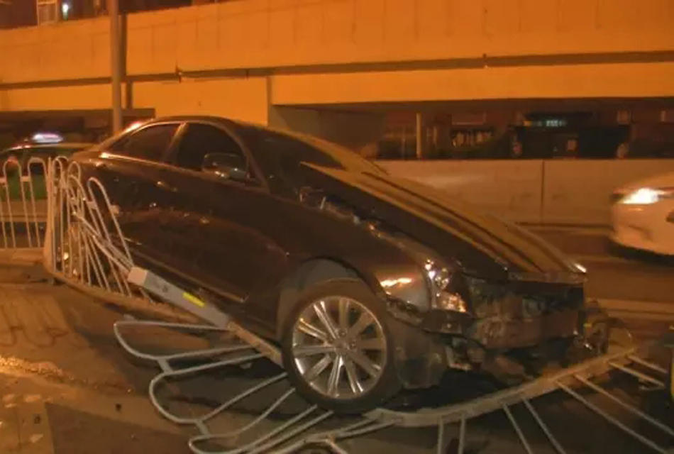 肇事小车最终停在上桥位的马路中间。当老友记赶到现场的时候,肇事司机正在接受酒精测试。经现场交警确认,司机没有酒驾,事故原因是车子爆胎了,现场没有人员伤亡。据了解,肇事车辆在经过德坭立交自西向东方向时,突然爆胎,左轮胎完全脱落,车子失控来了个180度大转弯,直接撞上路中间的护栏,护栏被死死压在车底,还有一部分护栏被撞到墙边。 (来自:广东广播电视台今日最新闻)