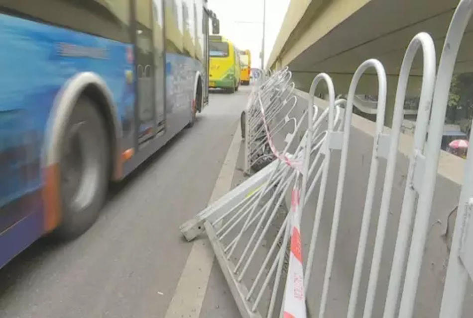 昨日上午,老友记重返事发现场,发现被撞断的那段护栏依然靠在墙边。部分护栏变形严重,直接凸出到机动车道上,存在安全隐患。老友记于是现场拨通市政投诉电话,接线员表示尽快转到对应部门进行跟进。广州交警回应,会去现场处理,预计今天就可以完全解决。 (来自:广东广播电视台今日最新闻)