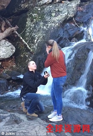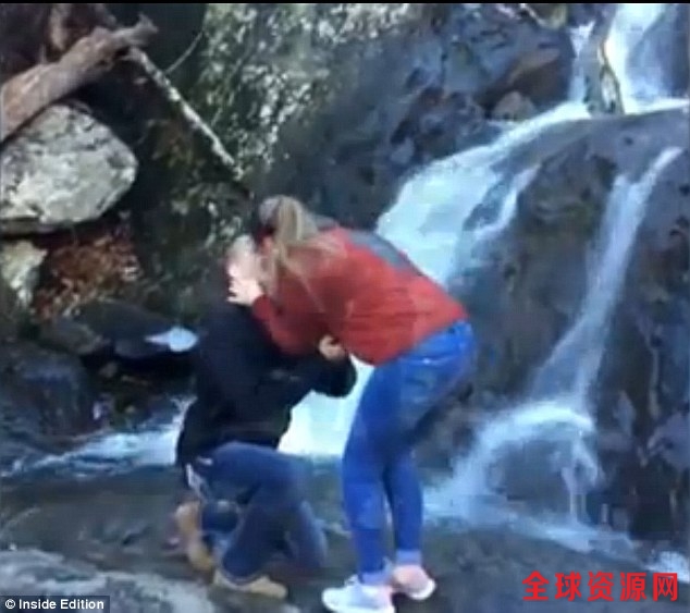 大写的心疼!美国小伙在瀑布前向女友求婚,求婚很成功,结果开心了没有一秒钟,订婚戒指就不小心掉进河里了!