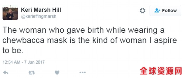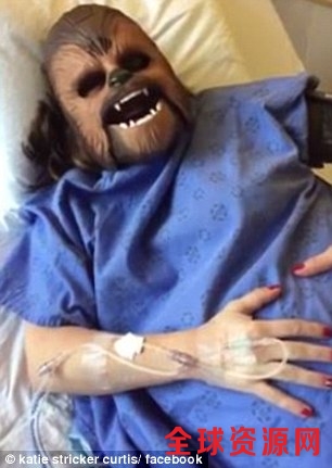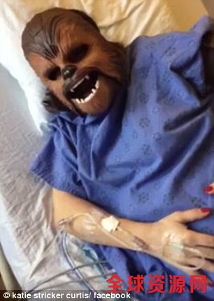 是的,这是一位生孩子的时候还坚持戴着楚巴卡面具的妈妈!生孩子是件很痛苦的事,但是Katie却让它变得有趣了很多