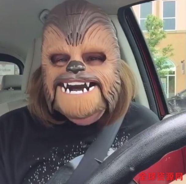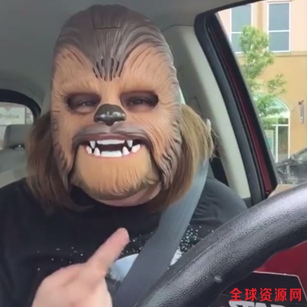这位小姐姐名叫Candace Payne,她的楚巴卡面具本来是买给儿子的生日礼物,结果在停车场里,她就迫不及待地自己戴上了,然后爆发出一阵狂笑,笑声不能再魔性!