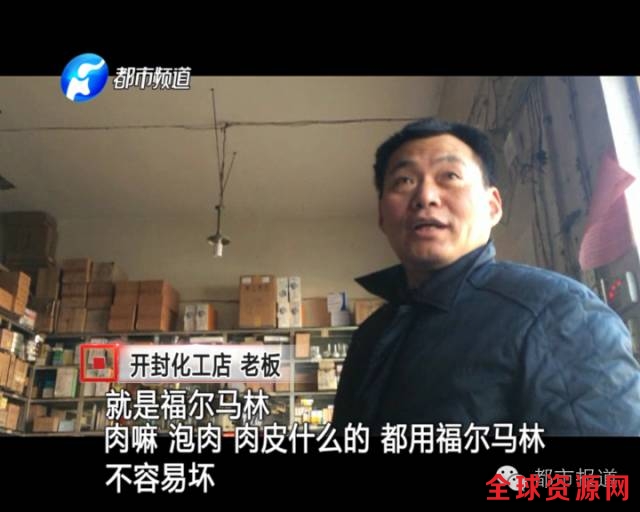 在另外一家化工产品商店,老板知道记者要卤肉,就推销起了一种工业防腐添加剂——福尔马林,这是工业甲醛,是国家明令禁止使用在食品中的添加剂!