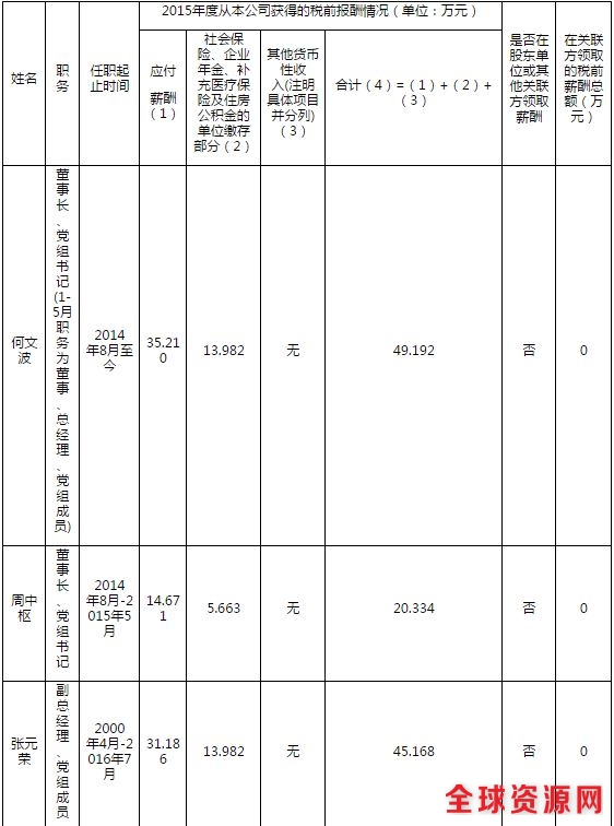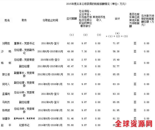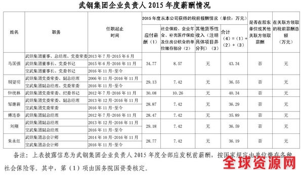 而武钢负责人报酬在6家央企中垫底,即使一把手马国强也仅有43.34万元。武钢集团旗下上市公司武钢股份(600005)在2015年以巨亏逾75亿元摘得“亏损王”帽子。另外,除党委常委、纪委书记钟统林报酬刚刚超过40万元外,其余6人均处于36万元左右。