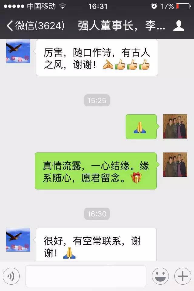 龙族香,点赞数 —灵感缘于岳母旅游香港,澳门,深圳等地方时习近英大姨的热情招待,感恩感谢。 三字经兼藏头诗 钓墨客 前世缘,今生续。 龙凤牵,急笔赋。 邀约情,谈笑趣。 八方相,绘梦赌。 画梦连,镜头酷。 携香聚,墨客渡。 南北会,东西簇。 感恩宴,精华补。 习主席,笑佛肚。 近才奖,远将布。 英雄亲,天地舞。 大大习,形象塑。 姨挥笔,劲书儒。 您急试,福超估。 好映彩,贵人扶。 风雨笑,舍情租。 心香溢,笑佛语。 绘梦长,众才聚。 爱长城,神兵驻。 龙族香,点赞数。 竖读左边每一句第三个字内藏:缘牵情相连,聚会宴席奖。亲习笔试彩,笑溢长城香。 竖读第九句至第十五句第一个字内藏:习近英大姨您好。 写于鲁安丘市经济开发区2015.11.27(09:14)