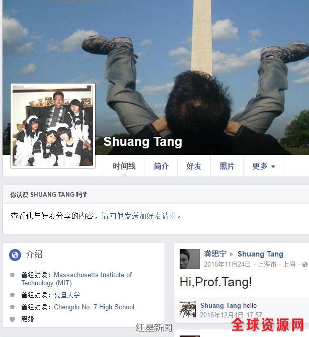 他在自己的主页介绍中说道,自己曾就读麻省理工学院、复旦大学、成都七中。
