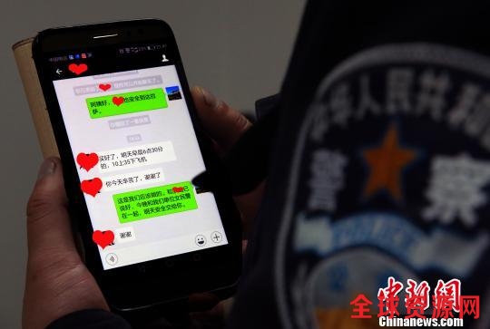 拉萨铁路公安处民警用微信给萌萌(化名)母亲报平安。 刘荫 摄