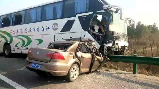 1月25日13时30分许,苏A86508大客车沿沪陕高速,合肥往六安方向行驶到669K处(位于高刘道口附近)冲撞过中间隔离带到对面车道,碰撞到一辆豫AF87B8轿车,事故造成轿车上2名大人,2名小孩共4人当场死亡。