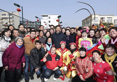 2016年2月3日,习近平在江西省南昌市东湖区彭家桥街道光明社区同居民们合影。