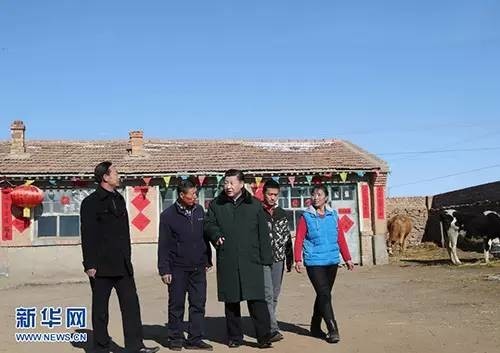 习近平在张北县小二台镇德胜村看望慰问村民,向乡亲们拜年。