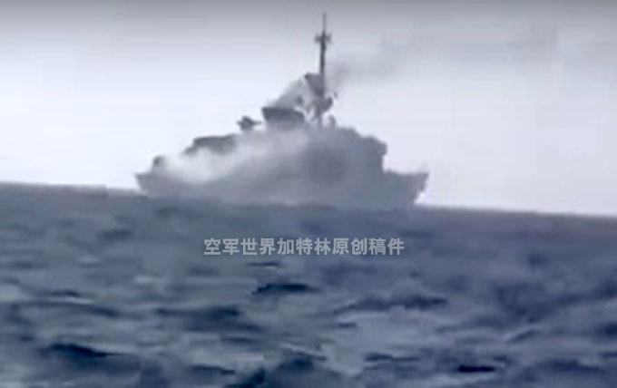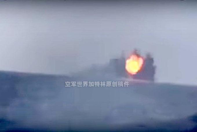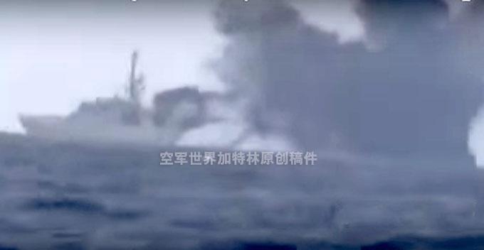 在网上出现的视频中,该护卫舰尾部被一枚反舰导弹直接命中,发生巨大爆炸,火光浓烟冲天而起。