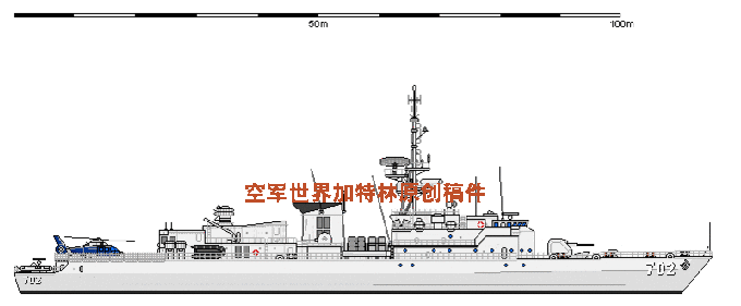 该舰还配备了一门100毫米/44 DP主炮,类似于中国引进的少量法国100毫米炮。两门40毫米副炮、4具324毫米鱼雷管、一架海豚多用途直升机。