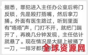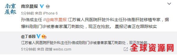 据交汇点报道,今天上午,江苏省人民医院肝胆科孙倍成主任被砍伤,目击者称凶手将办公室反锁,用刀将其捅伤,孙倍成大动脉破裂,一排牙齿打断。