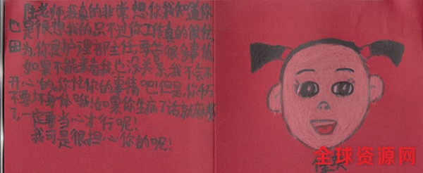 13岁患儿施佳英写给上海市儿童医院护理部主任陆群峰的卡片。