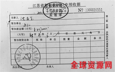 江苏宿迁市宿城区纪委收缴沈友金1007万余元后开具的收据。本版图片/代理律师供图