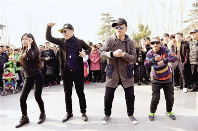 在两个小时的探访和视频直播过程中,舞者们面对手机、相机、摄像机镜头不知疲倦地扭动身体。围观群众跟随音响摆放的位置形成一个3至4层的半圆,圆心区域成为舞台。还有围观者快速跑到花坛上占据位置。舞者们则会维持秩序:“都散开点,围这么紧我们没法跳!”