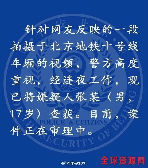 针对网友反映的一段拍摄于北京地铁十号线车厢的视频,我们已经关注,正在开展调查。维护公民人身权利和公共秩序是公安机关的法定职责,对于违法行为,公安机关会依法予以坚决打击。