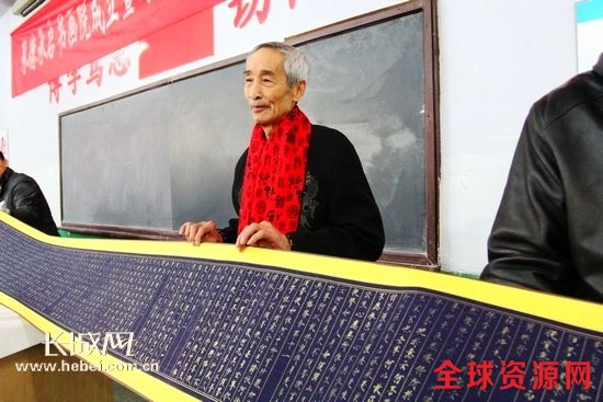 长期的研习,使高荣昌先生对瘦金体有了进一步的感受。即:“鼠头钉尾方转角,竹撇兰捺小蛮腰;死往生返游丝引,拉弓放箭回马挑!”他用瘦金体书写的《金刚经》可谓是技法娴熟、独具神韵。书法人生,让他的梦想越飞越高,2014年8月1日,由人民日报《民生周刊.艺术》杂志社主办的“翰墨了然——高荣昌、张晓光书画展”在北京东交民巷艺术馆开幕,展出高荣昌书法作品30幅,参展的18米长卷《道德经》、20米长卷《金刚经》,博得满堂喝彩。2015年1月5日,在北京市龙城丽宫酒店,为青海玉树当卡寺重建慈善举行义拍活动,高荣昌的瘦金体20米《金刚经》长卷惊艳全场,上千名企业家踊跃举牌,最终拍得13万元;另一幅瘦多金体《心经》拍得2.5万元。两幅作品共拍得15.5万元,全部捐赠给寺庙,以帮助其重建。此举不仅展现了“瘦金老人”的宽阔胸怀,更展现了一场慈善和艺术的完美结合。(文:王海峰)