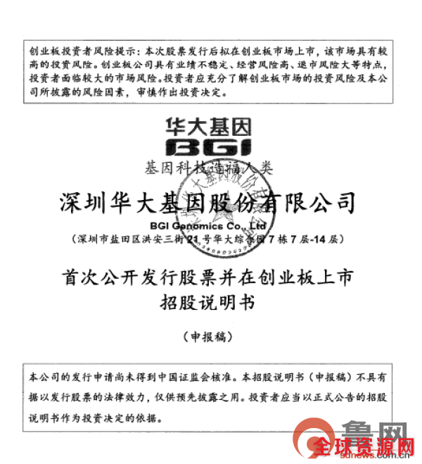 鲁网3月15日讯(记者 王雅茜)14日,深圳华大基因股份有限公司(以下简称为“华大基因”)发布了IPO预披露。华大基因预披露显示,公司拟募资17亿元,发行股票数量不低于4000万股,将于深交所创业板上市。