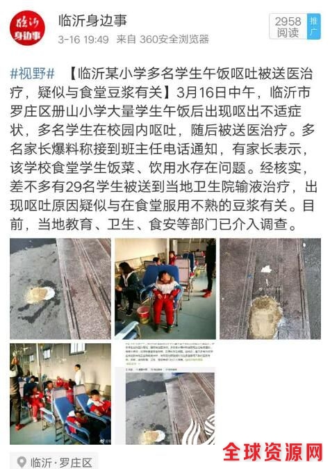 鲁网3月17日讯(鲁网记者)16日晚,微博@临沂身边事爆料称:16日中午,临沂市罗庄区册山小学大量学生午饭后出现呕吐等不适症状,多名学生在校园内呕吐,随后被送医治疗。目前,29名学生已全部恢复正常,未再出现症状反复。今天上午罗庄区教育体育局对外发出《罗庄区教育体育局关于3月16日册山街道中心小学29名学生午餐后出现呕吐、肚痛现象的情况通报》,通报如下: