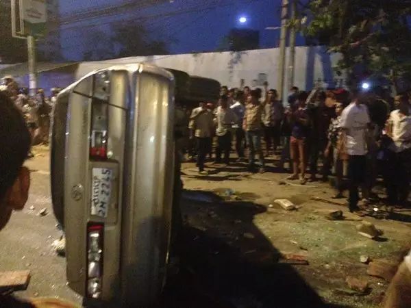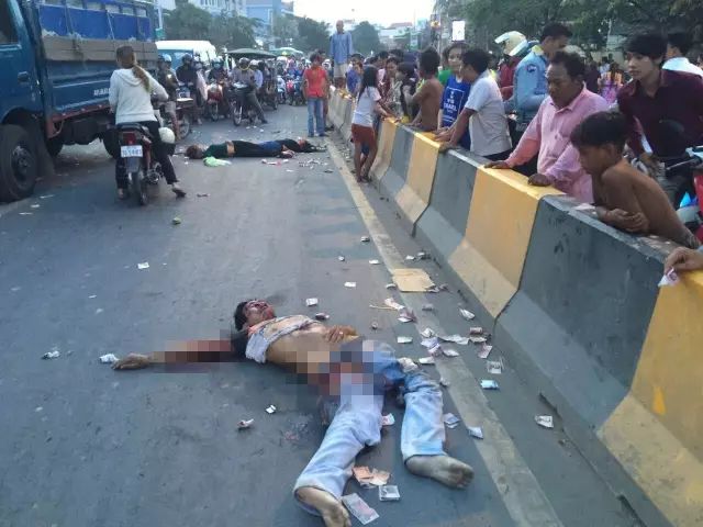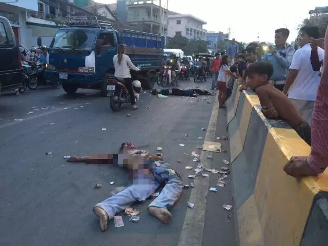 27日傍晚,金边桑园区万禾蜜分区莫尼旺大道铁桥头附近发生一起严重车祸。一名醉酒男子驾车因逆向行驶而连撞上迎面开来的7辆摩托车,酿成3人当场死亡,8人不同程度受伤。