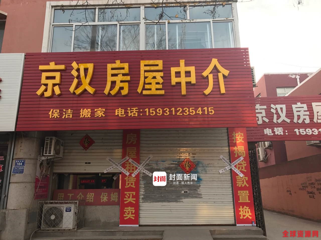 在该县一家名为“京汉房屋”房屋中介店,记者看到其门上也被贴上了封条。记者了解到,这家机构此前经营着房屋租赁买卖、按揭贷款置换等多项房产服务。