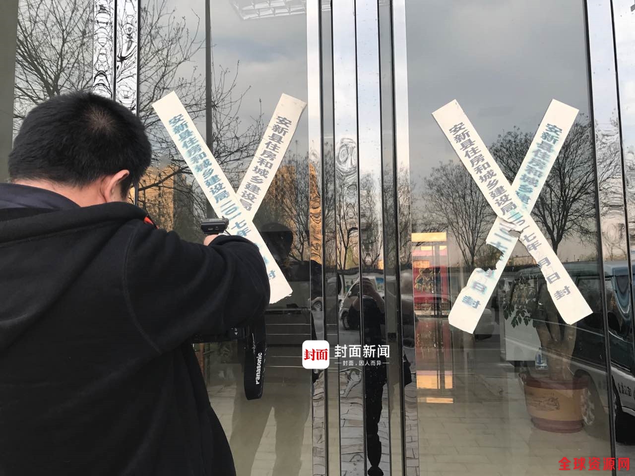 记者注意到,封条落款单位为安新县住房和城乡建设局。时间为2017年2月27日。除了封条,在这家售楼部的窗户上,该局还张贴了一封《致广大购房者的公开信》。
