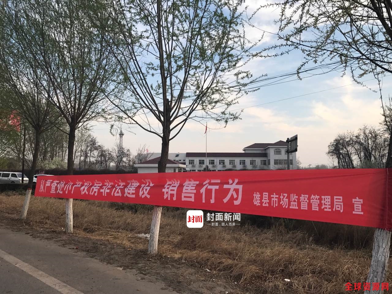 雄县市场监督管理局挂出的“严查小产权房”横幅。
