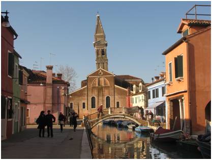 聖瑪爾蒂諾教堂位於威尼斯的布拉諾島,小島以五顏六色的房屋著稱。 53米的鐘樓建成于1714年,算是比較「年輕」的斜塔。 現在,延續了威尼斯斜塔特色的聖瑪爾蒂諾鐘樓,已經成了布拉諾島的一個重要標誌。