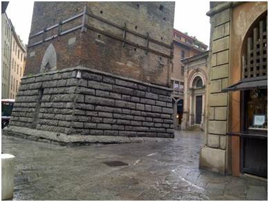 另一座加里森達塔只有48米,但整整傾斜了4度,超過比薩斜塔0.03度。 近距離看塔基真的傾斜很厲害。 2012年摩德納地震的時候,人們曾很擔心它會倒塌。