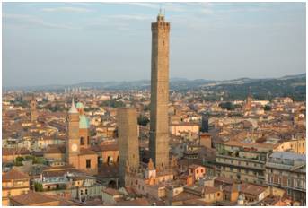 雙塔是博洛尼亞的地標性建築,一高一矮,而這兩座塔都是歪的。 高塔叫阿西內利塔,高98米,是義大利最高的斜塔! 這也算一項光榮的紀錄了。 但傾斜度並不只有1.3度。